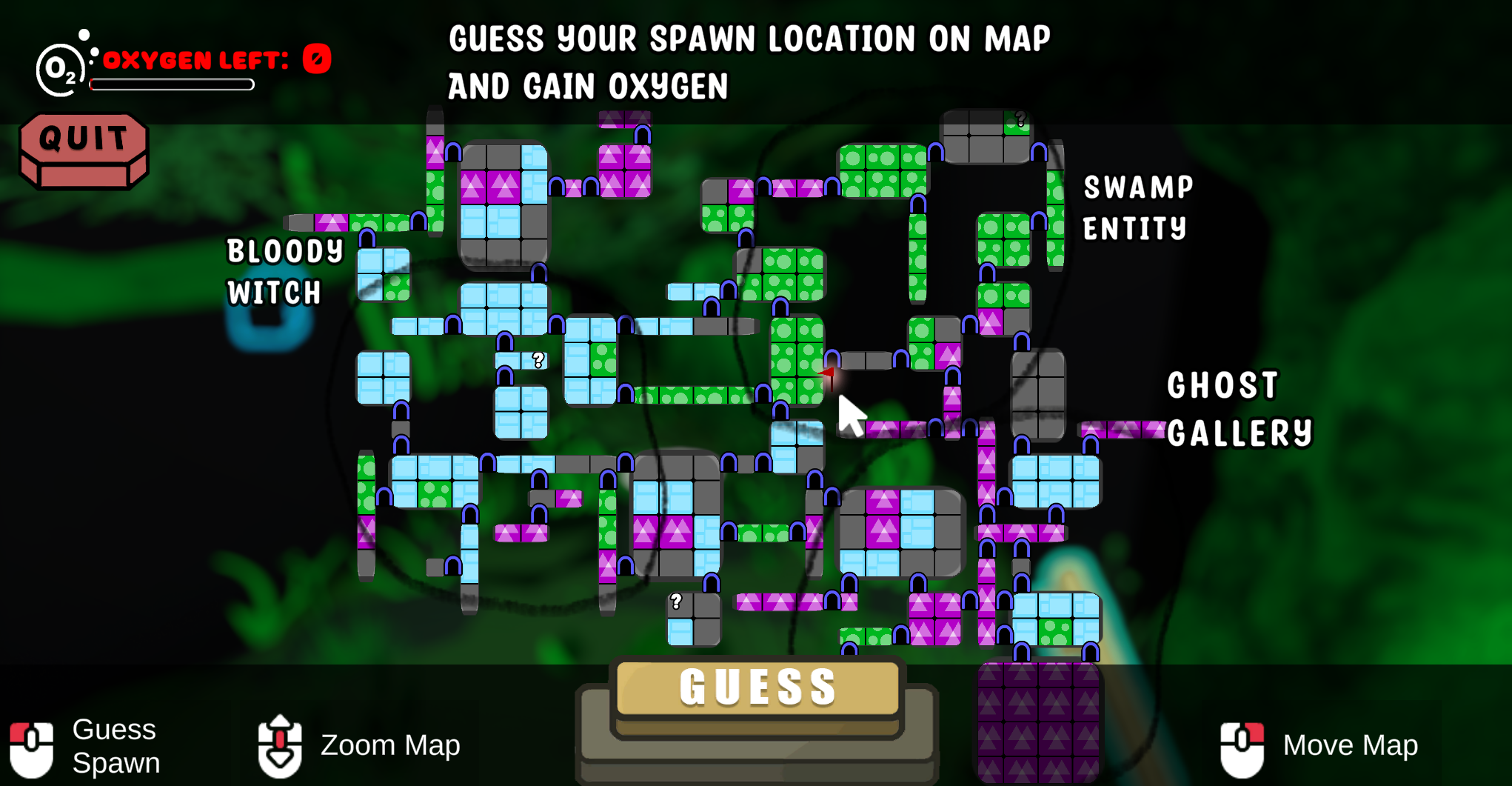 - E or Space Bar keys: Open/Close Map (can't close if oxygen levels are 0)